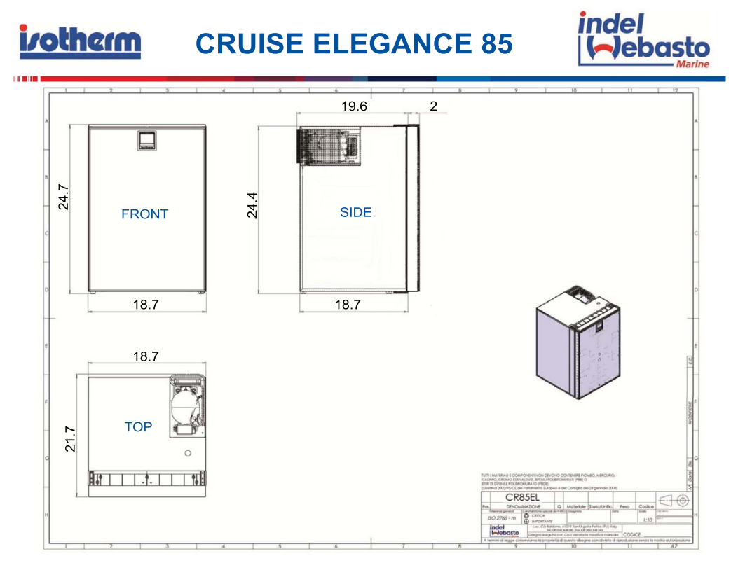 The Cruise 85 features a new inner lining and provides the customer with a 6 liter freezer compartment with magnetic steel evaporator door, two adjustable shelves and two retainers inside the door. It is ready for Isotherm Smart Energy Control, like all other CRUISE Elegance fridges.